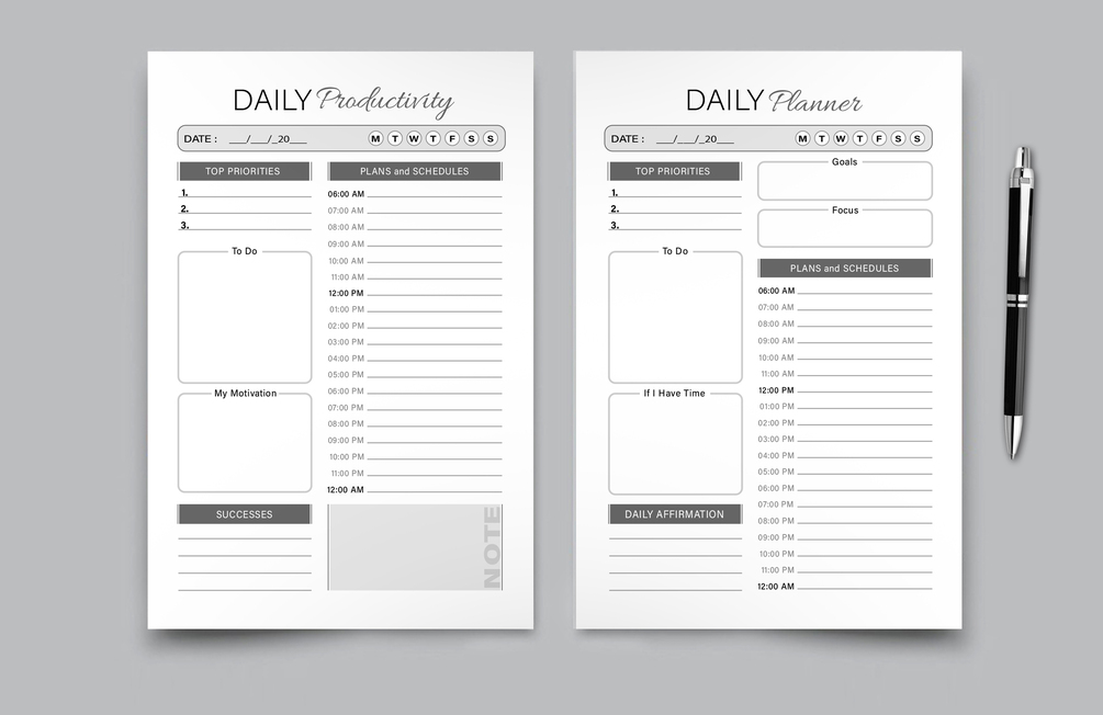 Download Your “Daily Productivity Planner” instantly with PDF, PowerPoint, Illustrator, InDesign formats ready to upload on KDP